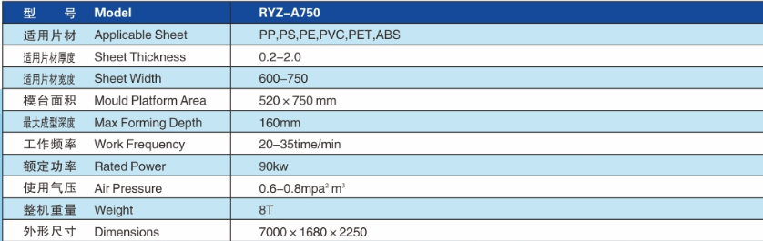 RYZ-750系列全自動液壓制杯機是我司開發(fā)研制的高速度,高效率的全自動塑料容器的成型機。該機適用于生產(chǎn)PS,PP,PVC,PET,ABS等塑料片材